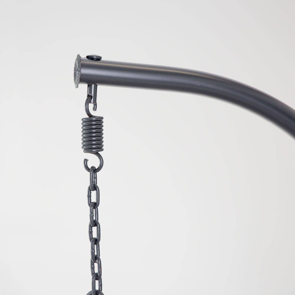 Der Korb des Sessels wird an einer Feder mit Kette aufgehängt, was die Einstellung seiner Höhe ermöglicht. Dadurch kann er den individuellen Bedürfnissen angepasst werden und maximalen Komfort beim Entspannen bieten.