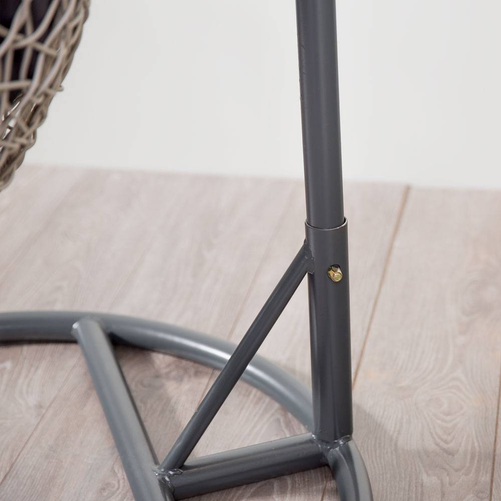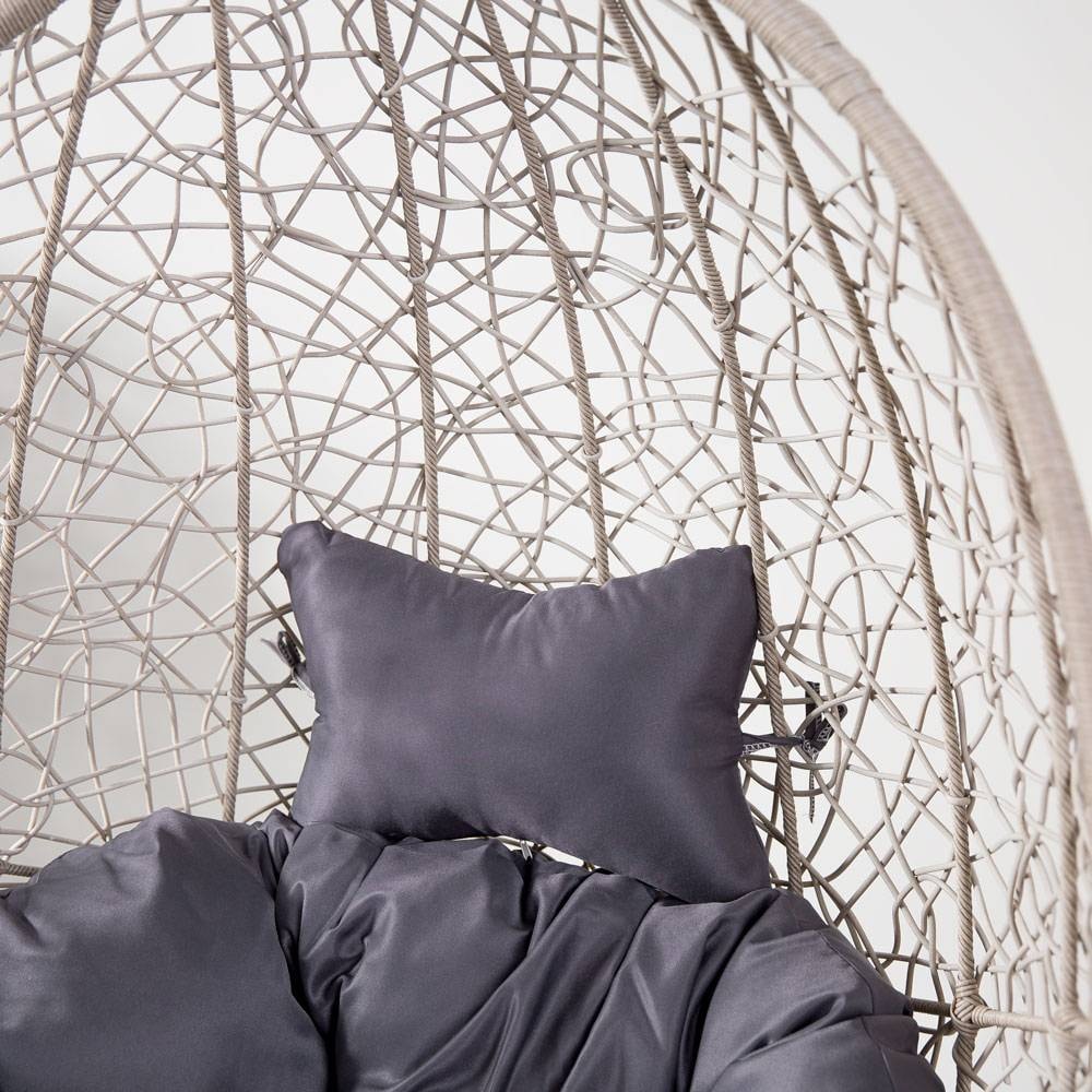 Der Sessel ist einfach zu pflegen - es genügt, den Polyrattan-Korb und die Stahlkonstruktion mit einem feuchten Tuch abzuwischen. Nach der Saison wird es empfohlen, den Sessel mit einer Abdeckung zu schützen, um ihn vor Feuchtigkeit und Schmutz im Winter zu schützen.