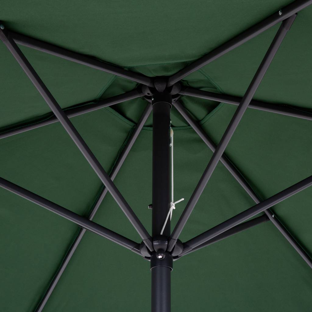 Der Schirm des Sonnenschirms basiert auf sechs stabilen Armen, was für gleichmäßige Spannung und Stabilität sorgt, selbst bei Windstößen. Diese Konstruktionsweise trägt zu größerer Haltbarkeit des Materials bei – das Gewebe verformt sich nicht, wirft keine Falten und behält das ganze Saison über ein ästhetisches Erscheinungsbild.