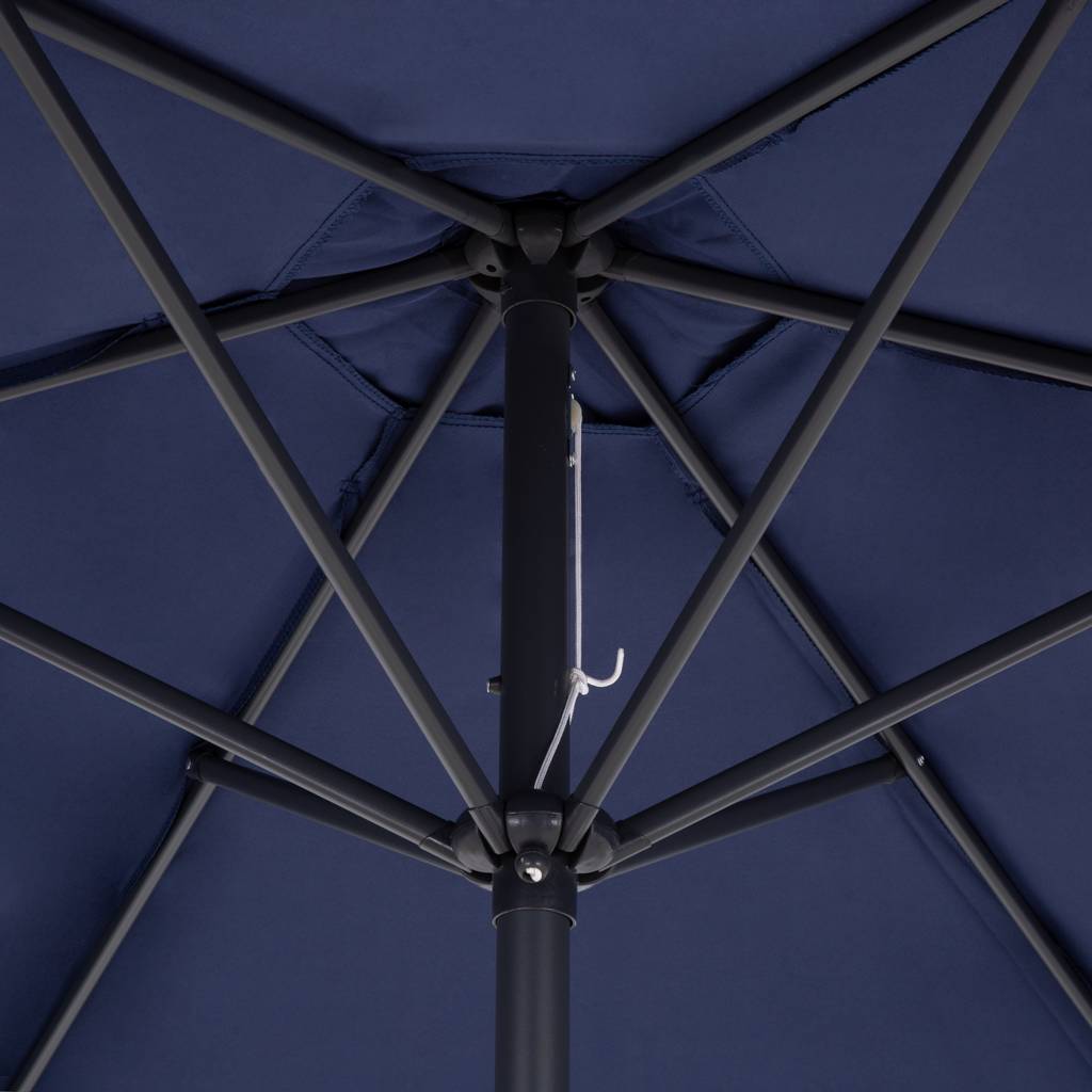 Der Schirm des Sonnenschirms basiert auf sechs stabilen Armen, was für gleichmäßige Spannung und Stabilität sorgt, selbst bei Windstößen. Diese Konstruktionsweise trägt zu größerer Haltbarkeit des Materials bei – das Gewebe verformt sich nicht, wirft keine Falten und behält das ganze Saison über ein ästhetisches Erscheinungsbild.
