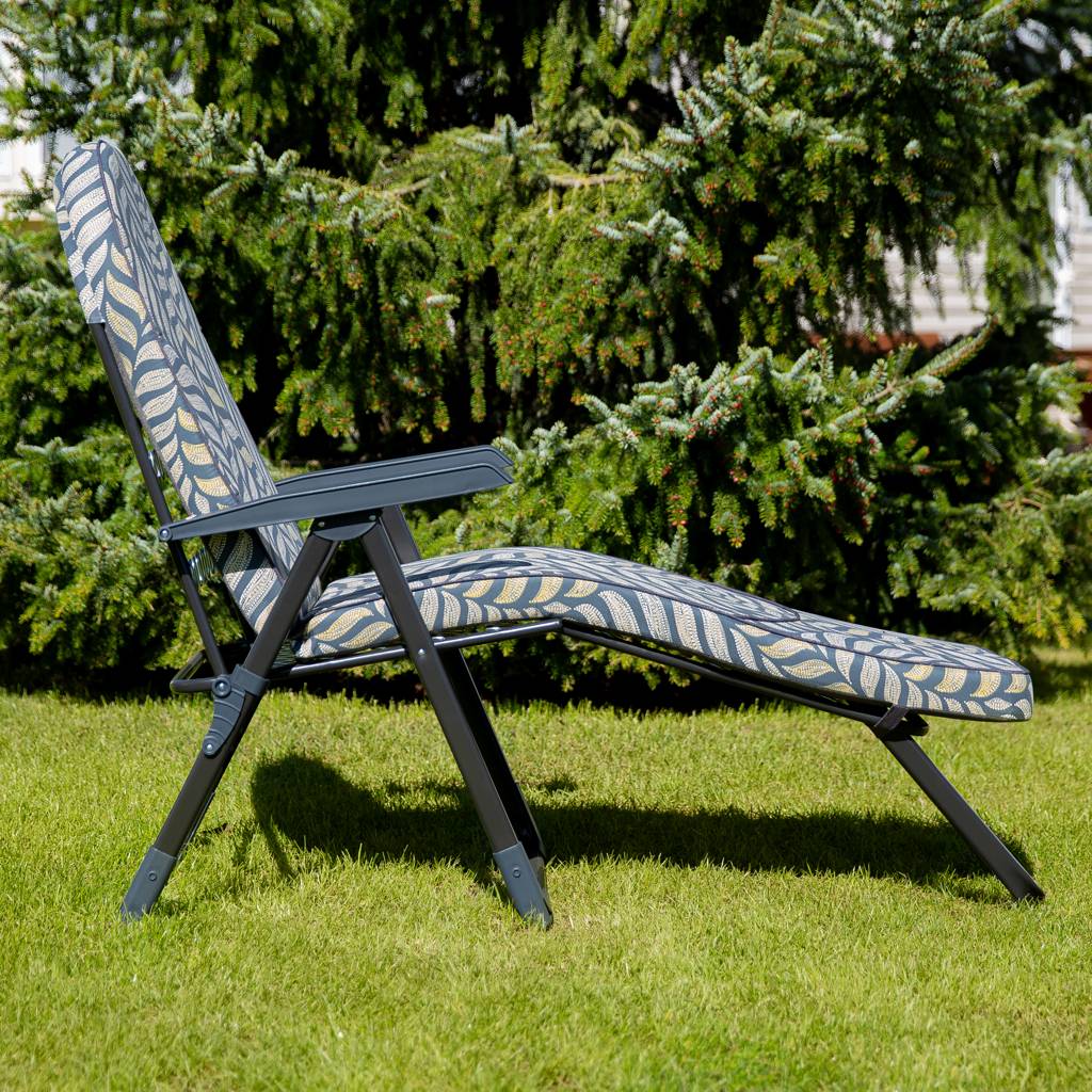 Die Gartenliege hat eine verstellbare Rückenlehne, die in bis zu 28 verschiedenen Positionen eingestellt werden kann. So lässt sich der Neigungswinkel der Rückenlehne an bevorzugte Position einstellen.