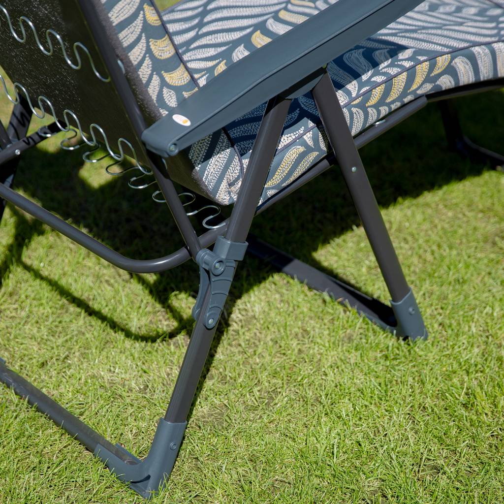 Das Gestell der Sonnenliege ist aus pulverbeschichteten Stahlrohren, die beständiger gegen Feuchtigkeit und unterschiedliche Witterungseinflüsse sind. Damit kann die Gartenliege über mehrere Saisons benutzt werden.