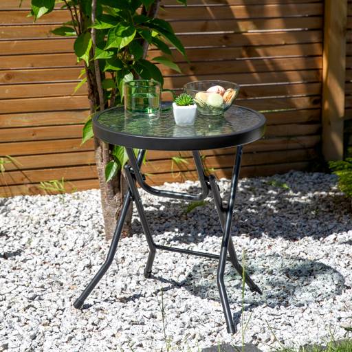 The Bistro garden table is an excellent choice for those looking for a stylish yet practical element for their outdoor space. Its tempered glass top and anthracite color make it easy to fit into any arrangement. The lightweight, powder-coated metal frame ensures stability and protection against corrosion, allowing the table to be used all year round. Its compact dimensions make it a great fit for a balcony or terrace.