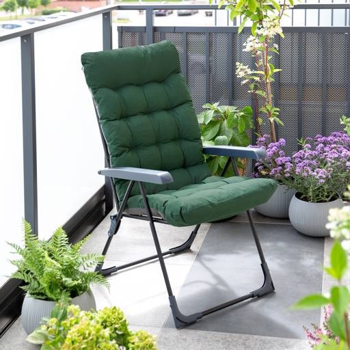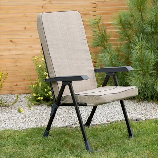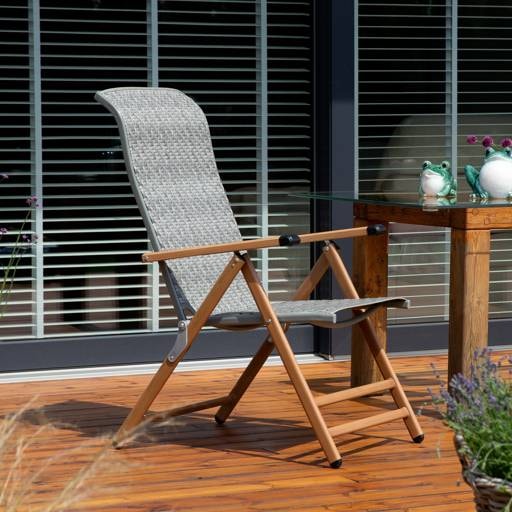 Garden chair with adjustable backrest and lightweight construction, perfect for your terrace or garden. Comfortable cushion included.