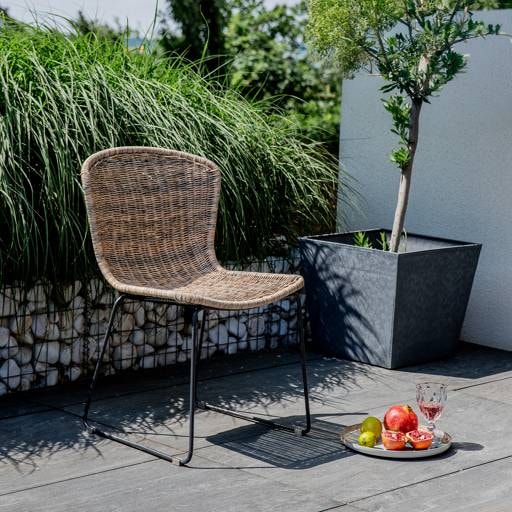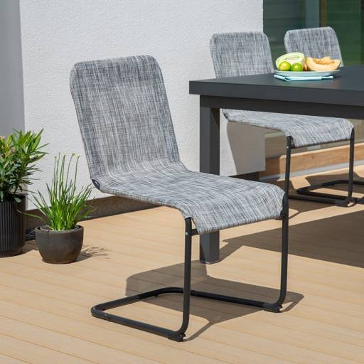 The garden chair with a timeless design, made of durable steel materials, fits any arrangement. Cushions included.