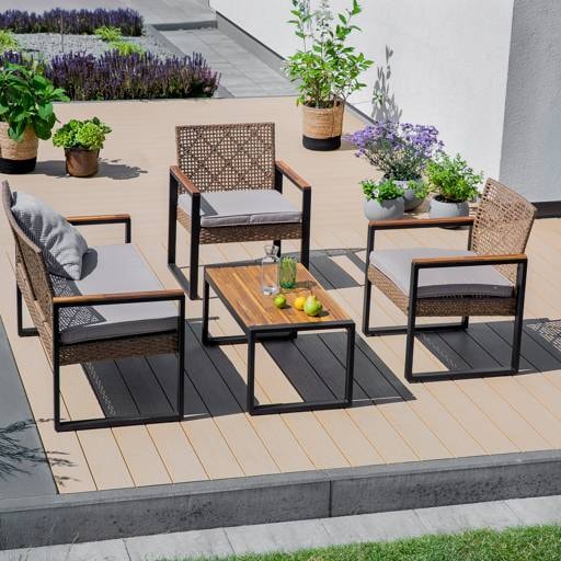 Garden dining furniture set: table and 4 chairs with composite boards. A stylish and practical choice for the terrace or balcony.