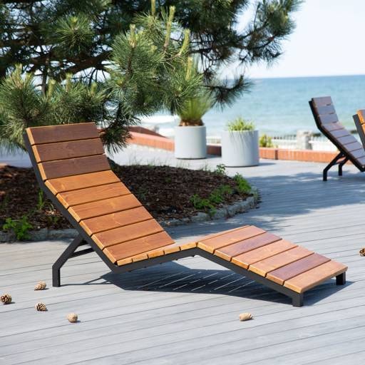 Wooden garden lounger with a modern design, perfect for the terrace. Made of resistant larch wood.