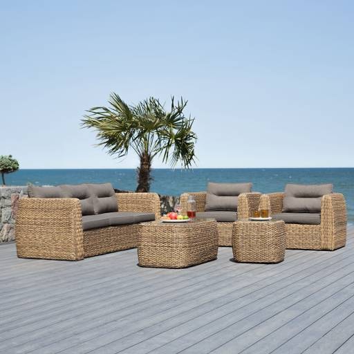 A comfortable sofa, two armchairs and a coffee table create a garden furniture set that is perfect for any modern relaxation area.