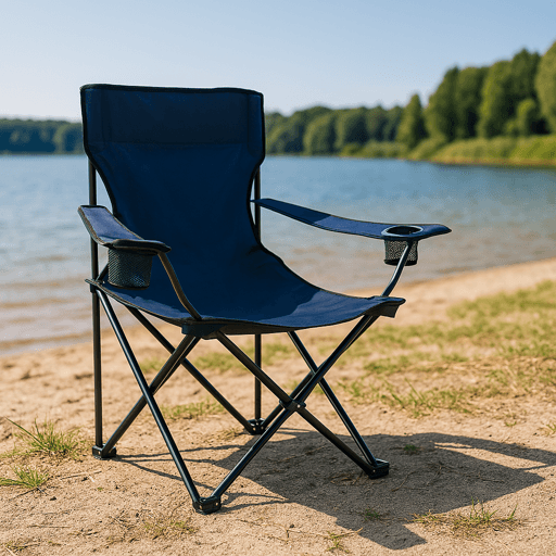 A comfortable, foldable camping chair, perfect for travel or a picnic.