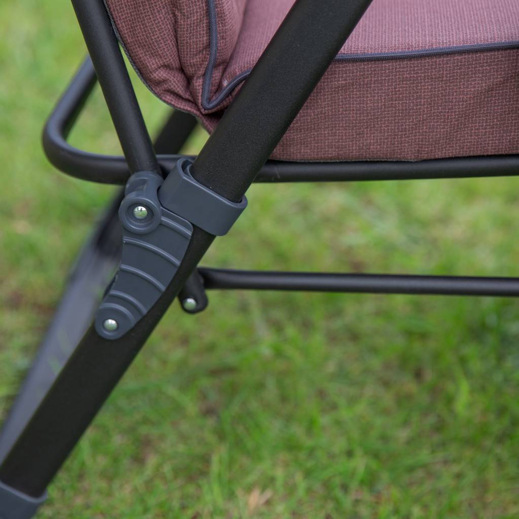 The sun lounger allows for precise adjustment of the inclination angle to individual needs – from a sitting position to almost lying down. Ideal for reading, relaxing, and napping outdoors.