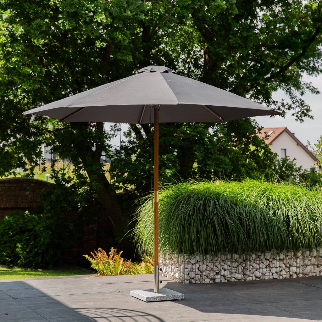 A stylish parasol is the perfect solution for hot days. Made of hardwood, it is not only resilient but also aesthetic. It has a 3-meter diameter, providing a wide area of protection from the sun. With the adjustment via a cord locked on a hook, you can easily adjust the canopy position to your needs. The octagonal canopy made of high-density polyester effectively protects and is easy to clean. This is a practical and stylish addition to any garden or terrace.