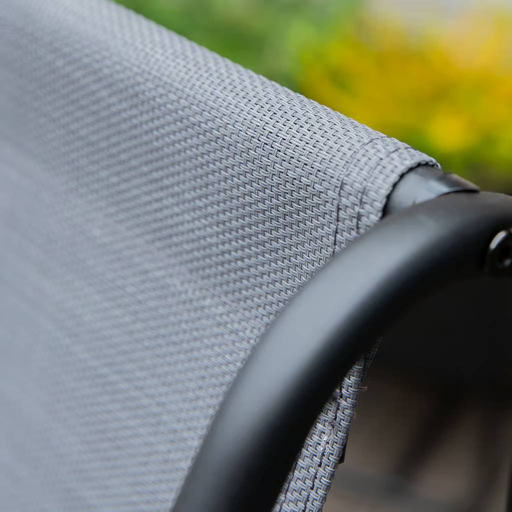 No – powder-coated steel and textilene are materials that are easy to clean and do not require special maintenance.