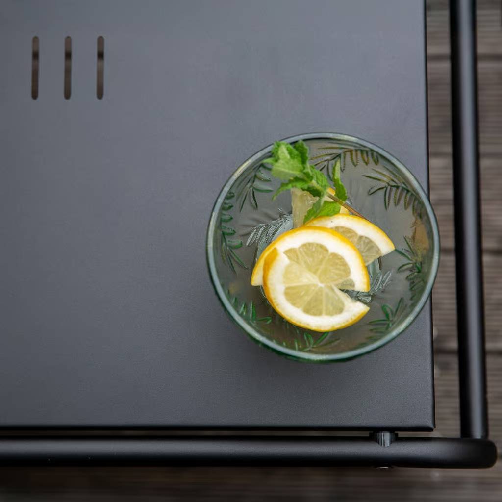 The table with a lightweight steel construction is a practical addition to the set. Its compact top can accommodate drinks, snacks, or decorations, and a maximum load of up to 20 kg provides full functionality – from everyday use to social gatherings.