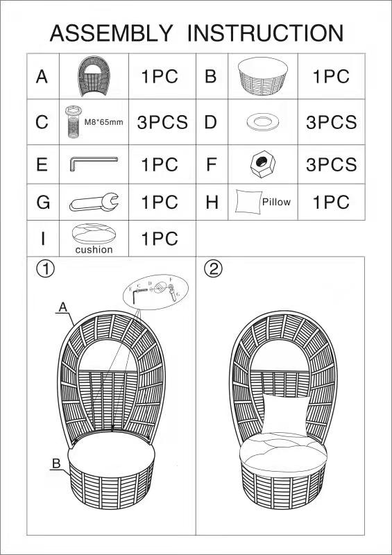 The chair comes with comfortable polyester fabric cushions. A zipper on the back allows for easy cover removal for washing.