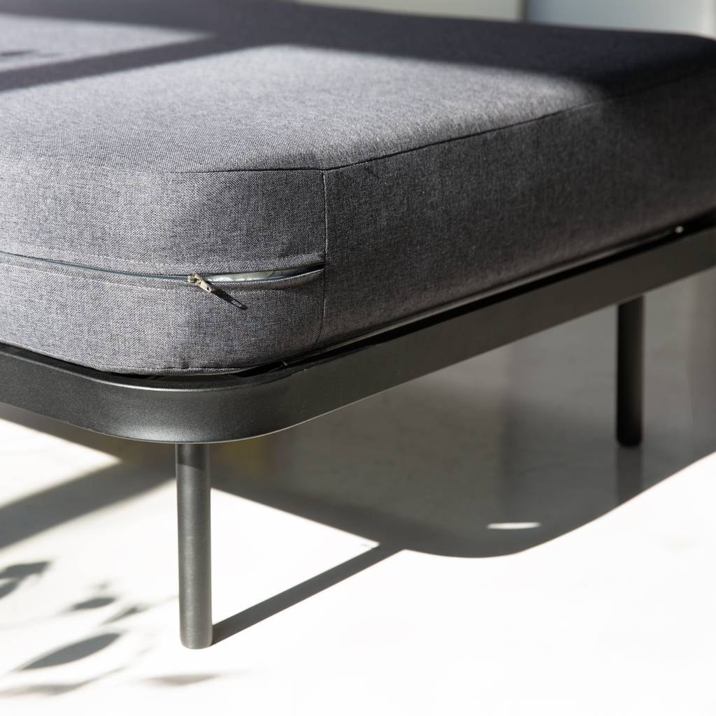 The Piryte garden pouffe is a practical piece of furniture with universal application – it can serve as a comfortable footrest, additional seat or table. Solid steel construction and thick padding ensure stability and comfort of use. Thanks to hook-and-loop fasteners and removable cover with a zipper, it is easy to maintain daily. Perfect as a complement to other modules from the Piryte collection.