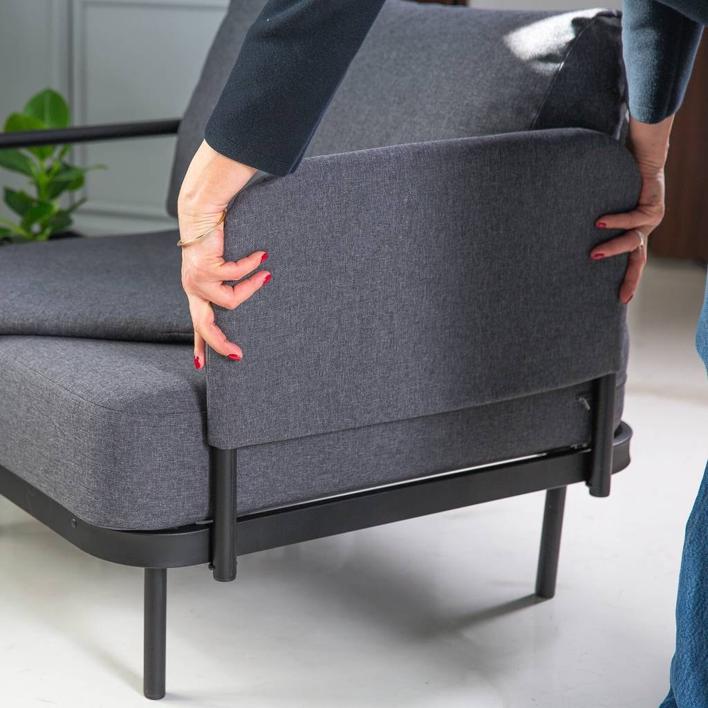 All elements of the set are based on frames made of powder-coated steel with a matte finish, resistant to moisture, corrosion, and UV radiation. The construction ensures stability and reliability for many seasons of use.