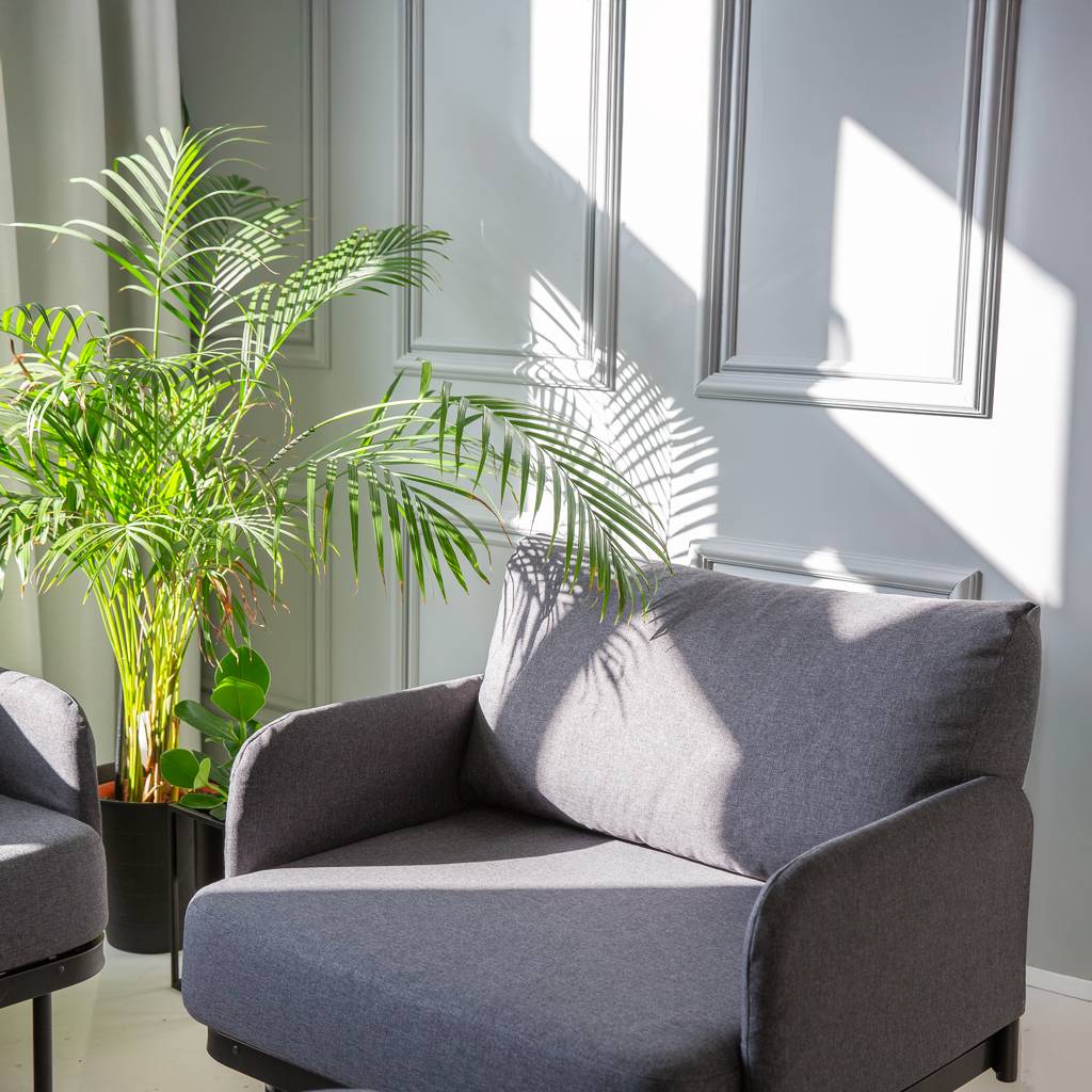 The Piryte set consists of a 5-piece modular corner sofa, an armchair, and a multifunctional pouf – a ready solution for arranging garden or terrace spaces. Modules can be connected and rearranged to create a layout tailored to the needs of users and available space. The pouf can also serve as a table.
