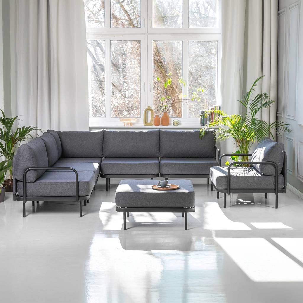 The Pyrite side module allows the completion of a sofa, corner unit, or the creation of a functional seat with an armrest mounted on the left or right side. The stable steel frame, removable covers, and cushion attachment system ensure durability and comfort of use. The side module is compatible with other elements of the Pyrite collection, offering complete flexibility in arrangement.