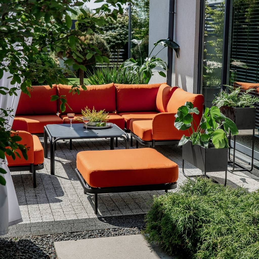The Piryte corner module allows for flexible design of leisure areas on a terrace or in a garden. Powder-coated steel construction provides high resistance to outdoor conditions. Stable seat with hook and loop fastener and removable covers enable quick cleaning. The module perfectly connects with other elements of the collection, ensuring comfort and functionality in any space.