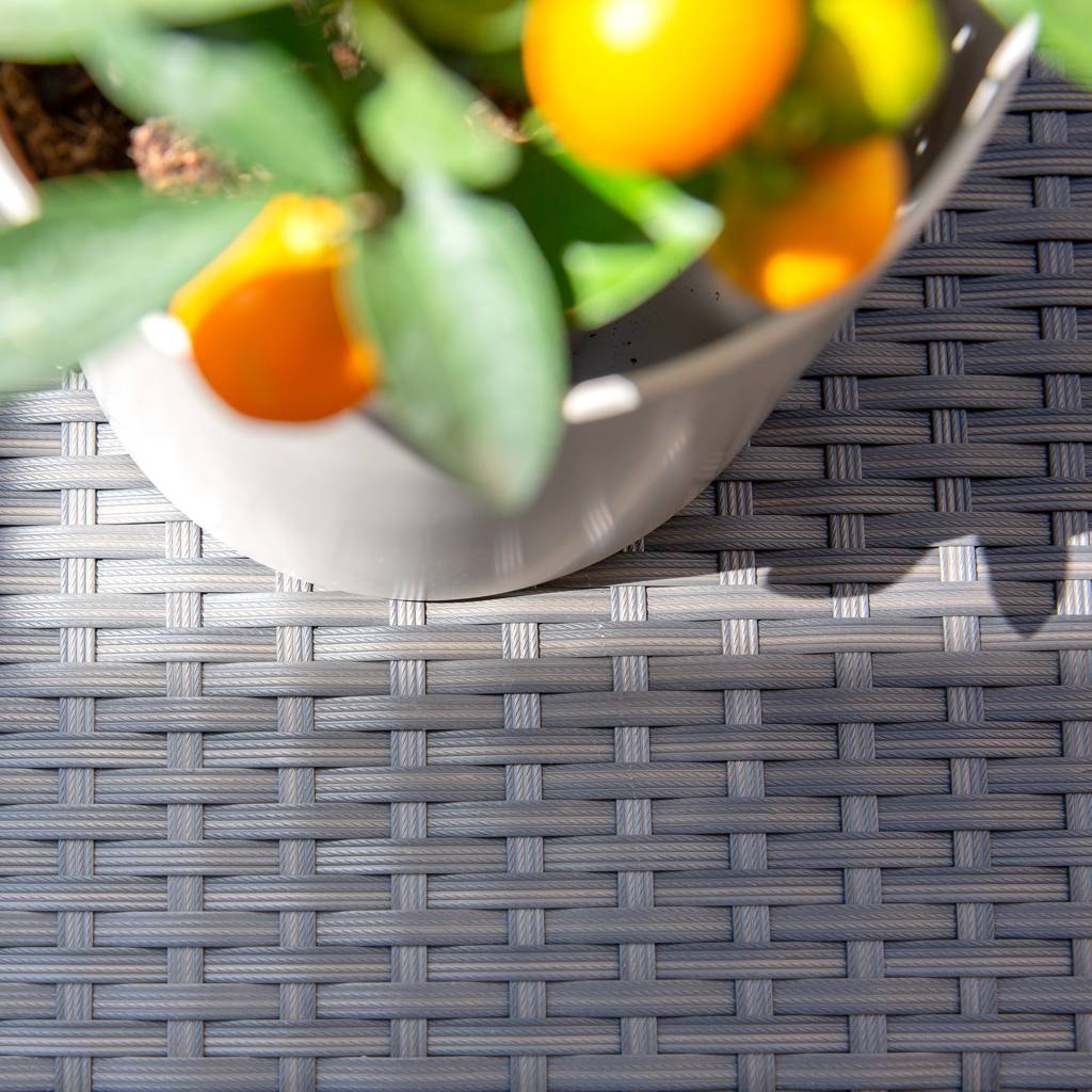 The garden furniture set is made of polyrattan, which combines the elegance of natural rattan with exceptional weather resistance. The furniture maintains its aesthetic appearance for a long time.