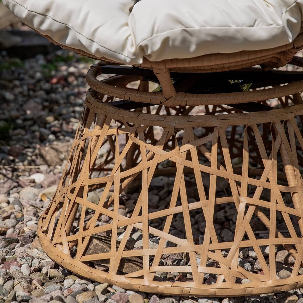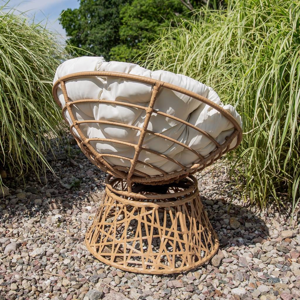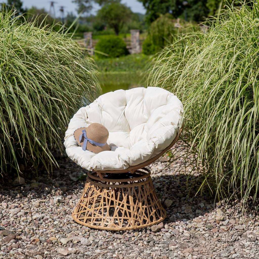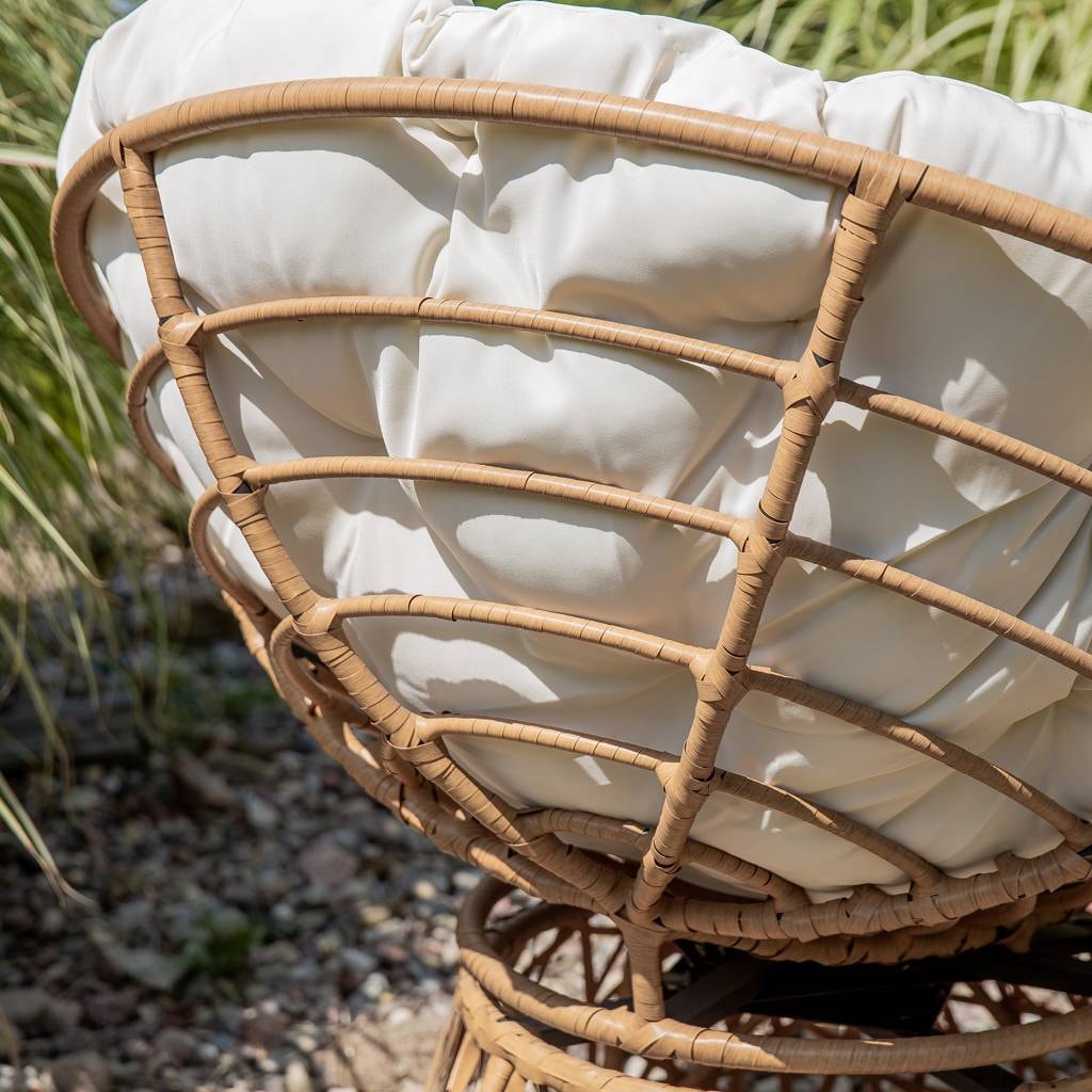 The polyrattan swivel papasan chair is suitable both for the garden and terrace, and its elegant design also makes it ideal for indoor spaces. This blend of style and functionality allows it to fit into many arrangements.