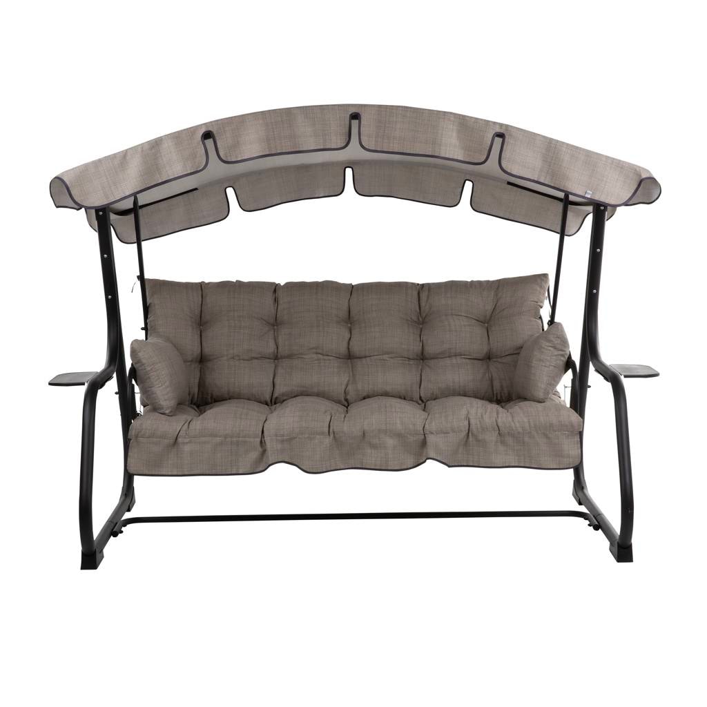 Comfortable, 4-person garden swing with sleeping function is the ideal choice for outdoor relaxation. It is equipped with soft, quilted cushions and a canopy, matching the color of the cushions, which protects from the sun. A stable powder-coated steel frame and spring seat ensure durability and comfort for many years.