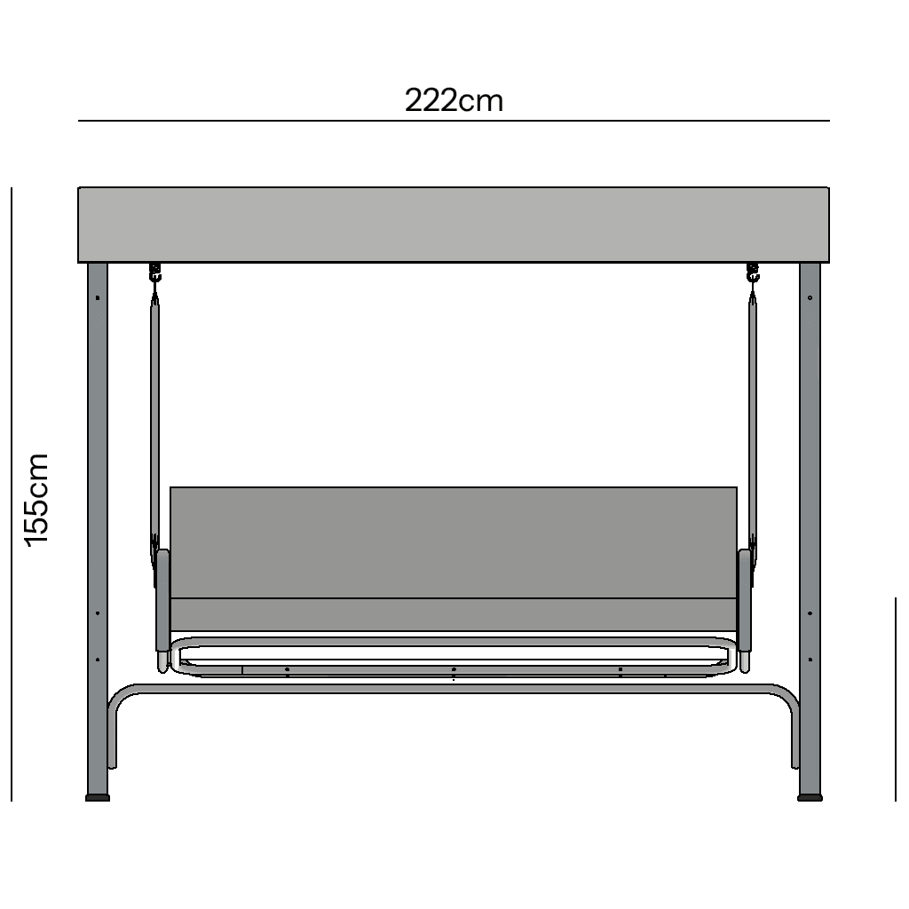 A comfortable 4-person garden swing with a canopy and cushions is perfect to relax outdoors. The powder-coated steel frame ensures durability, while the soft cushions with ties provide comfort during rest. The canopy is made of WATER REPELLENT fabric, making the swing ideal for both patios and gardens. The hydrophobic fabric makes it easy to keep clean by repelling water and protecting against dirt.