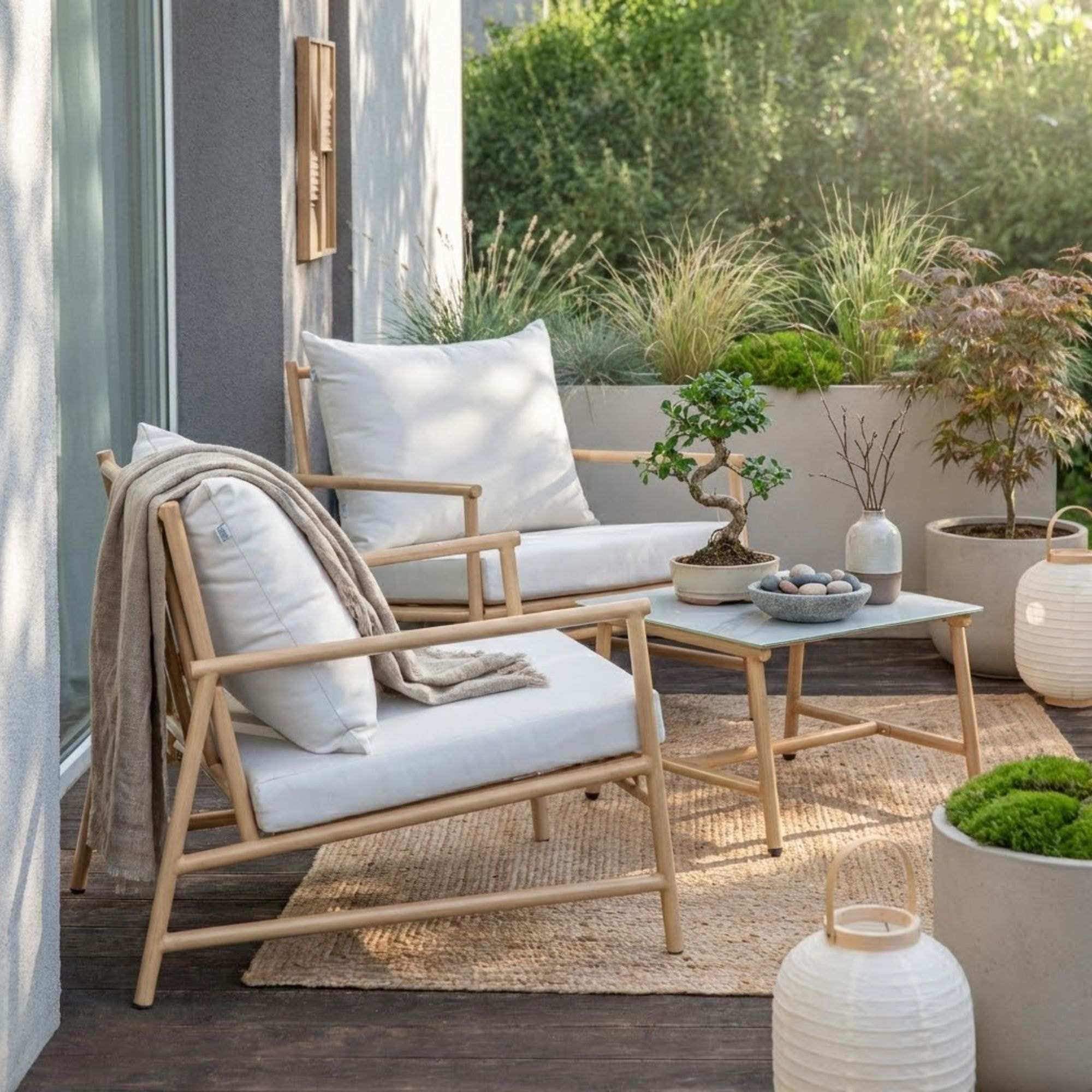 A terrace is more than just an outdoor space; it is a cozy extension of your living room and a place for relaxation. Japandi style is winning the hearts of design enthusiasts by combining the Japanese philosophy of Wabi-sabi with soothing Scandinavian Hygge. Learn how to create an arrangement full of harmony on your own. We suggest which colors, natural materials, and garden furniture to choose to invite peace into your space.