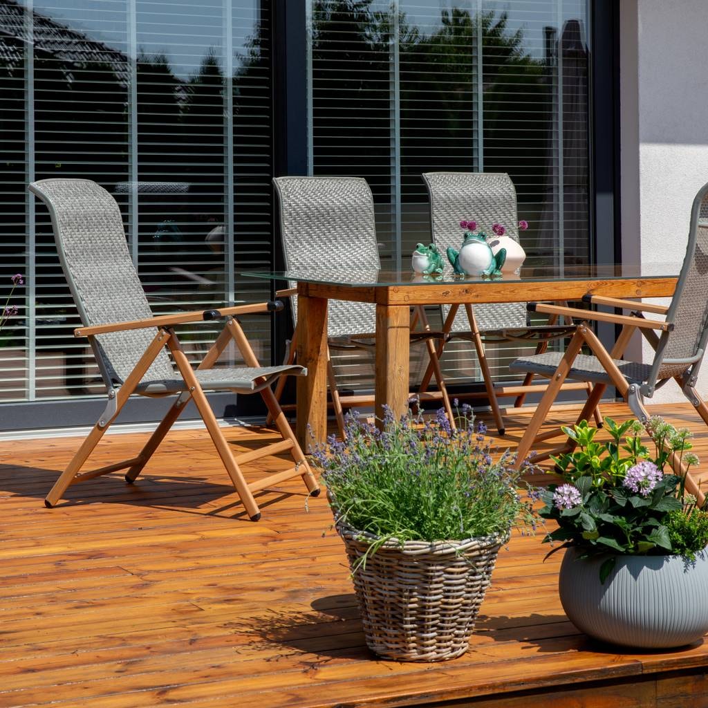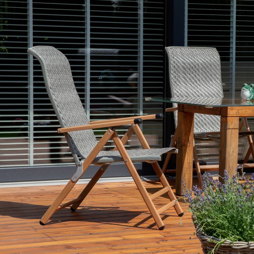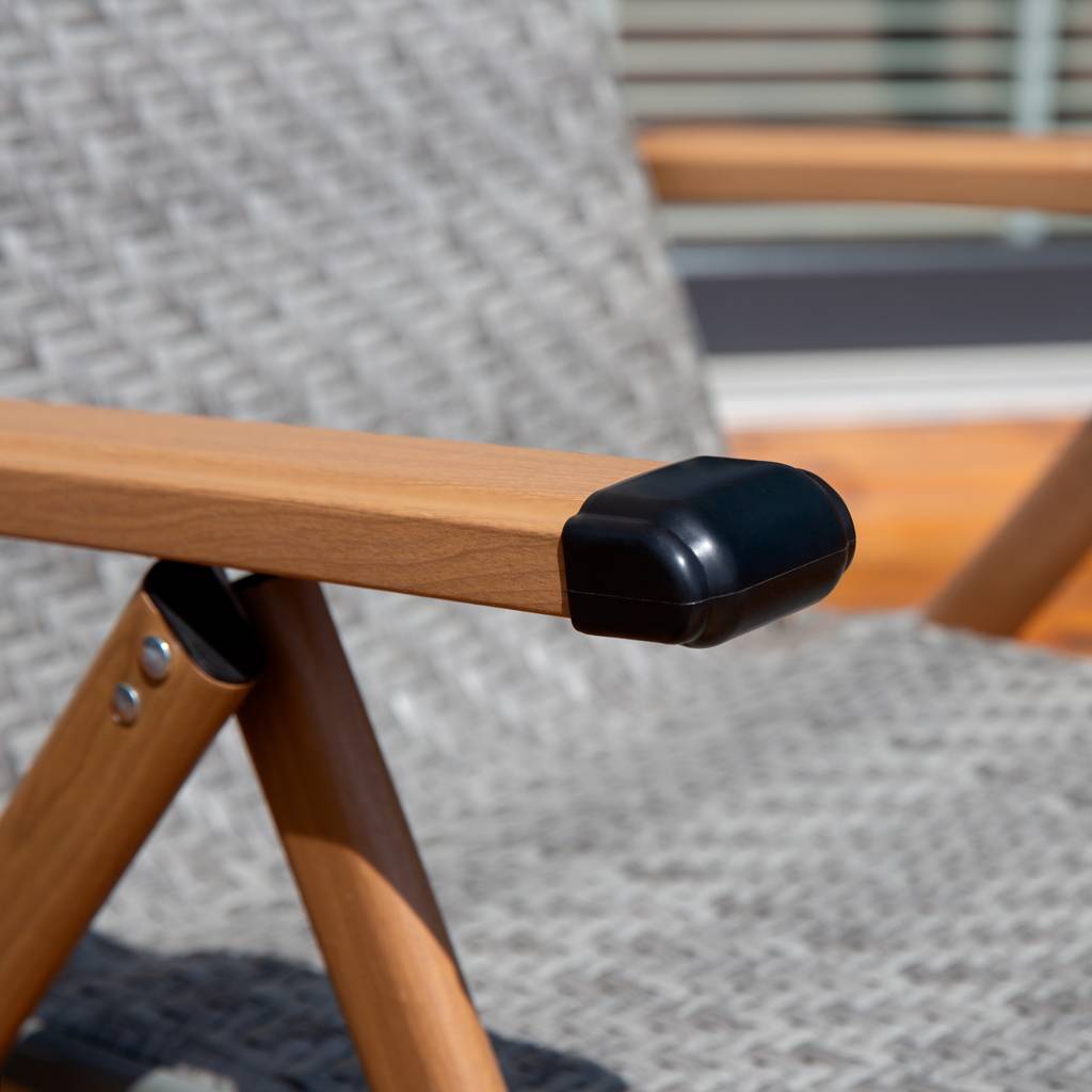 The reclining garden chair is equipped with a mechanism that allows you to adjust the backrest in up to seven positions. This way you can perfectly adjust the angle - from a sitting position at the table to a comfortable semi-reclined relaxation.