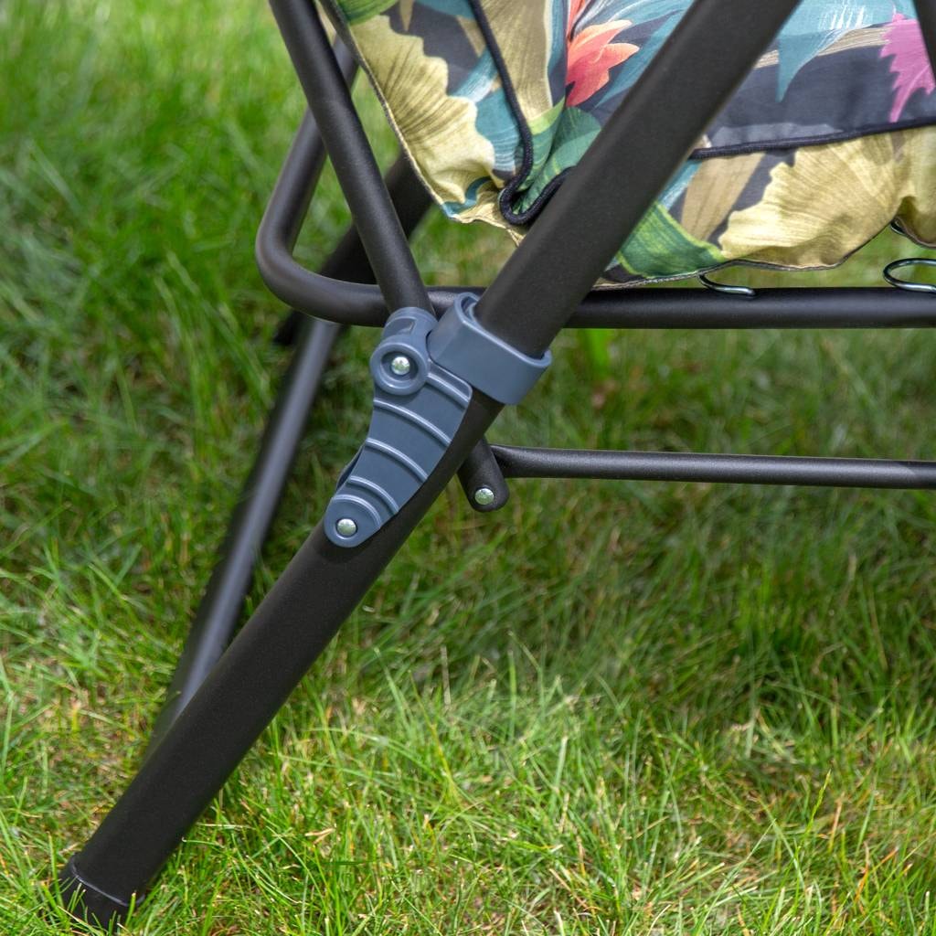 The frame is made of powder-coated oval steel tubes, providing high durability and resistance to weather conditions.