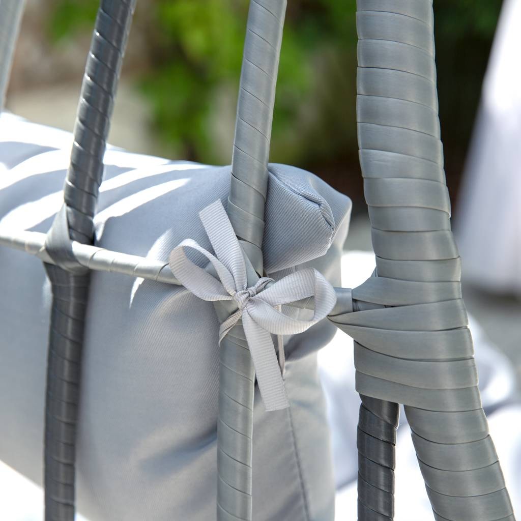 Technorattanowy kosz oraz stalowy stelaż można łatwo czyścić wilgotną ściereczką. Aby przedłużyć użytkowanie mebla, zaleca się jego zabezpieczenie pokrowcem w sezonie zimowym.