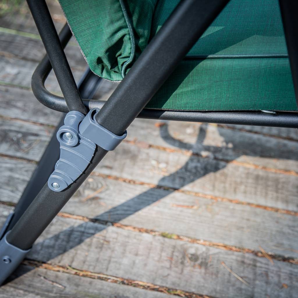 Leżak ogrodowy wykonany jest z owalnych rur stalowych, malowanych proszkowo, co zapewnia mu odporność na warunki atmosferyczne i uszkodzenia.