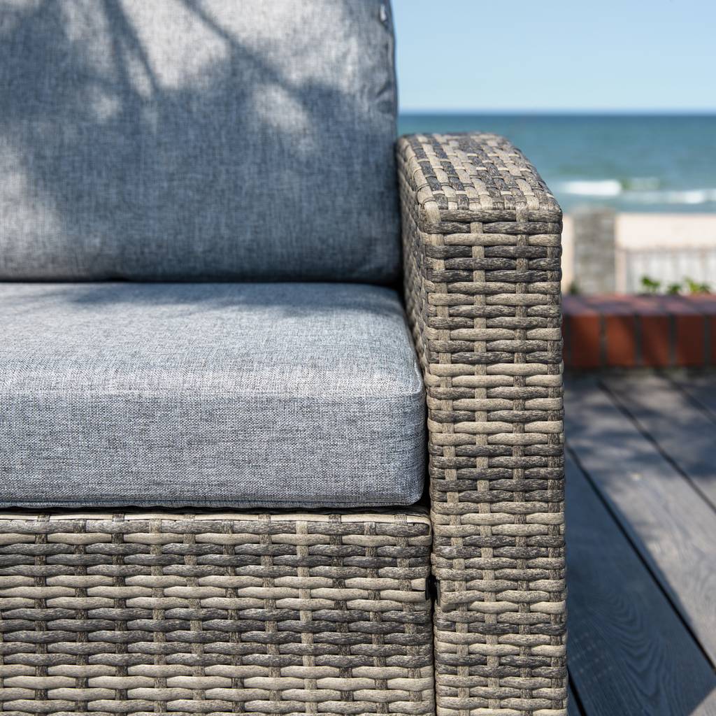 Meble wykonano z wysokiej jakości technorattanu – materiału odpornego na promieniowanie UV, wilgoć i zmienne warunki pogodowe. Dzięki temu zachowują swój wygląd i właściwości przez wiele sezonów.